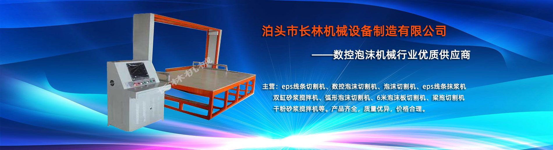 泊頭市長林機械設備制造有限公司座落于河北省泊頭市開發(fā)區(qū),地處北京、天津、濟南、石家莊中心位置。京滬高速、京滬鐵路、106國道、104國道穿行于本市,交通便利。 本公司是集多功能數控泡沫切割機的自主研發(fā)、生產、銷售和服務于一體的企業(yè),eps線條設備,數控泡沫切割機,發(fā)泡陶瓷切割機,eps線條切割機銷往全國各地,并開辟了國際合作的廣闊渠道。創(chuàng)新不斷的長林數控機械有限公司經過幾年的不斷研究,完善了建筑裝飾構件的配套設備和自動化設備,由過去手工生產到半自動生產發(fā)展到現在的CNC控制的全自動零誤差數控泡沫切割機床。不但讓客戶在交貨期上面爭取了時間而且···
